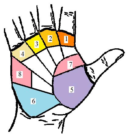 In Palmistry, the mounts are fleshy areas on the palm of the hand. There are three of four at the base of the fingers, at the base of the thumb and two areas on the inner and outer edges of the hand. Not everyone has noticeable mounts in all these areas and the quality of the mount can very greatly between people. The mount can be different between a persons two hands, and can change overtime as a person’s life and health changes. To read the mounts, a palm reader feels the texture, elasticity and fullness of these areas. In general, the fuller and softer the mounts; the stronger the characteristic associated with that area. For example, a full Mars may indicate an aggressive person; while a flat Venus would appear on an emotionally distant person. The Mounts of the hands may be elevated, flat, or depressed.